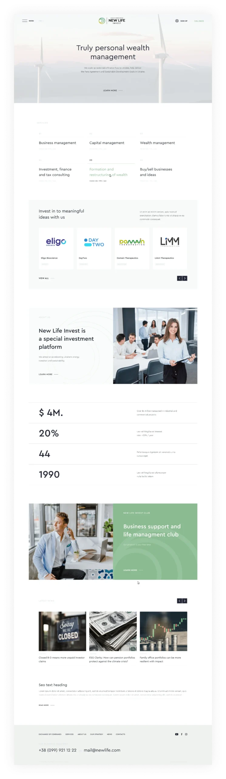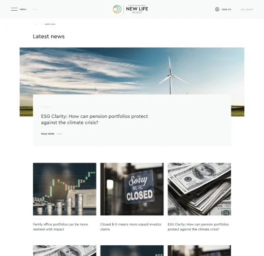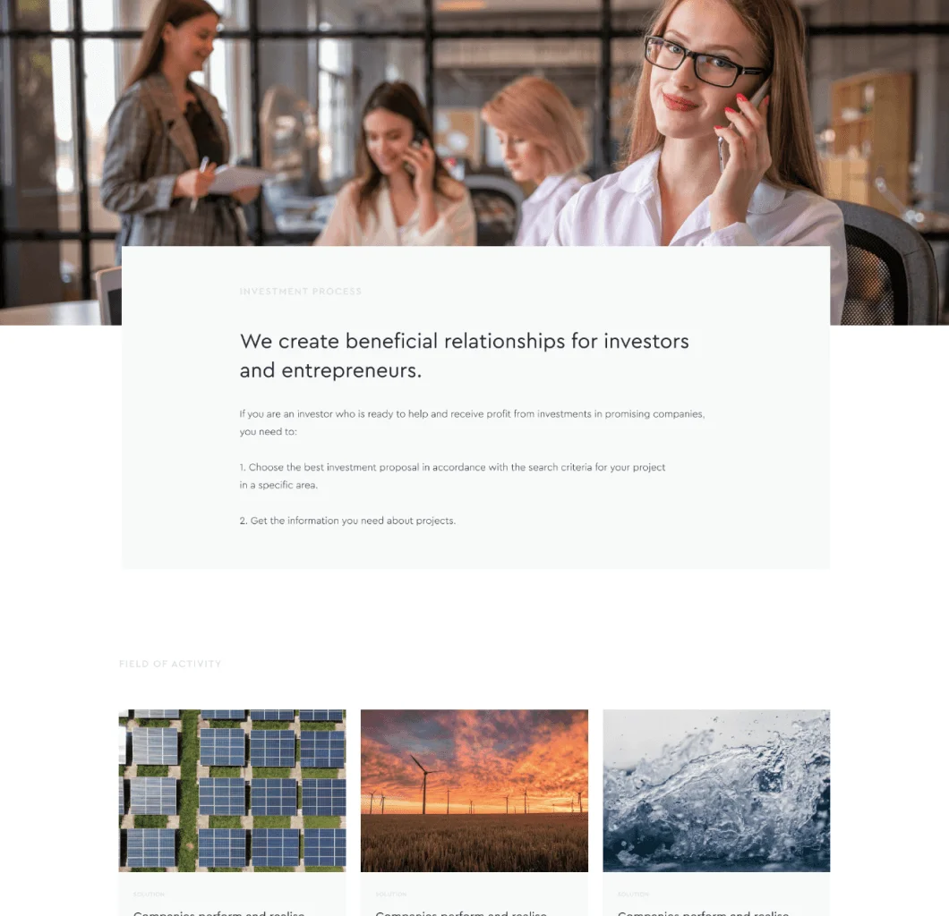 Разработка американского корпоративного сайта по инвестициям на платформе CMS WordPress для продажи консультационных услуг.